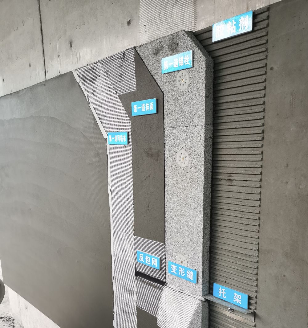 3 、應(yīng)設(shè)置標(biāo)示牌逐層解剖展示外墻保溫系統(tǒng)個構(gòu)造層材料種類。