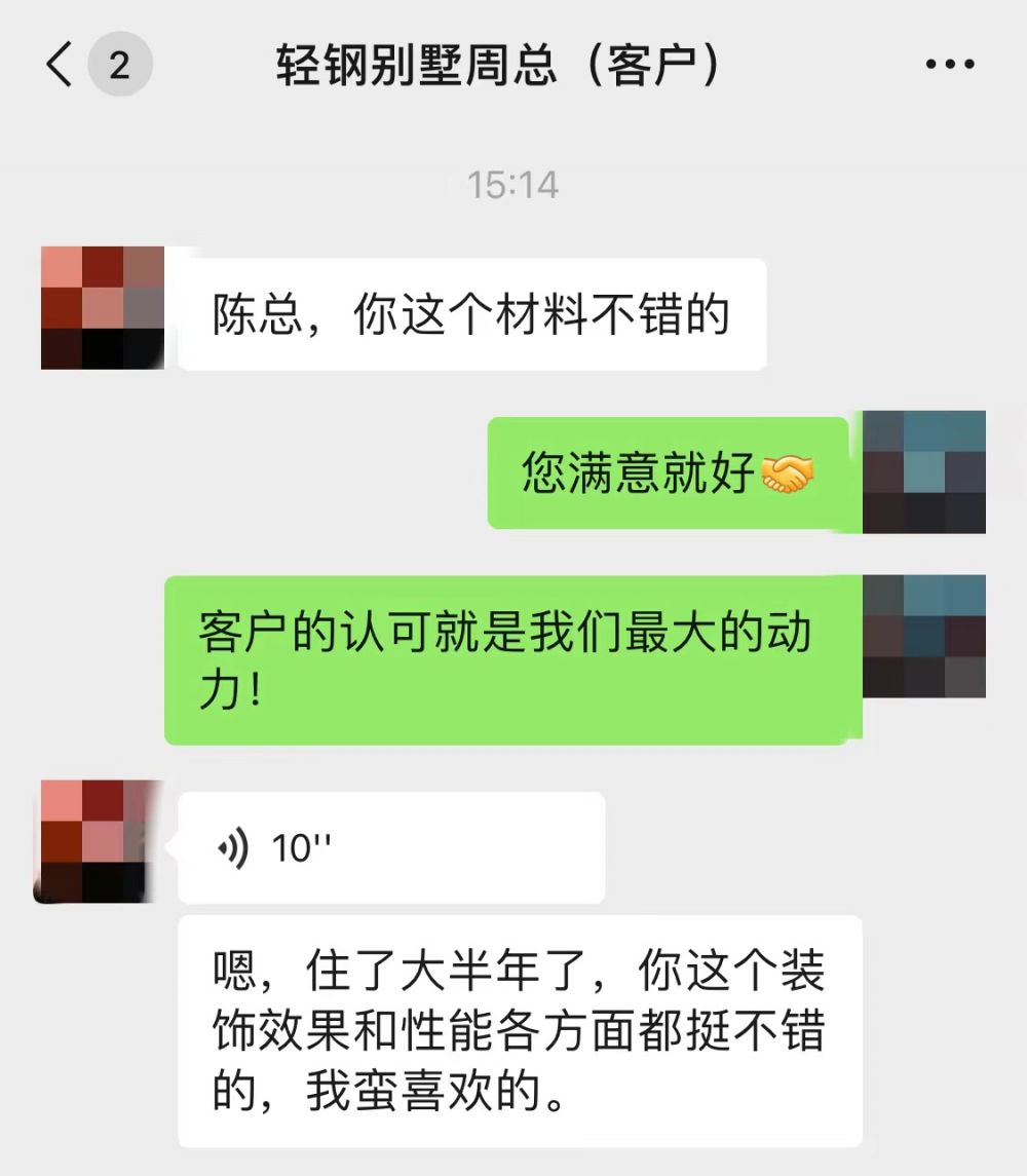 經(jīng)過(guò)許多真實(shí)案例表示,釉面輕瓷保溫板,能夠真正有效的解決輕鋼別墅隔音差,環(huán)境舒適度低的短板,并且得到了業(yè)主方的一致好評(píng),剛?cè)胧袌?chǎng)就斬獲了一大批真愛(ài)粉。