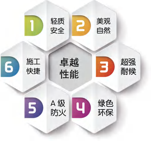 輕瓷是目前比重最輕的無機裝飾板材之一,與墻體接觸粘接的面是粗糙的無機砂漿層,與粘接砂漿等材料有著很好的相容性以及相同的膨脹系數(shù),更不易脫落,高層建筑也可放心使用。