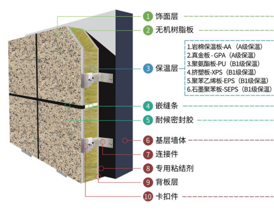 適用范圍:各類建筑物外墻保溫裝飾,老舊小區改造工程,可廣泛應用到各類建筑物外墻。