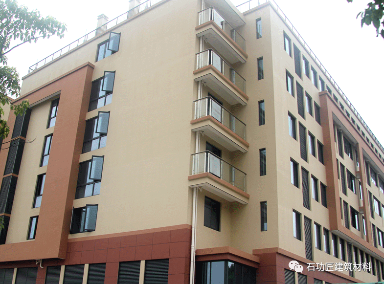特點:高端的涂料、有仿石材色系、可用15年左右。