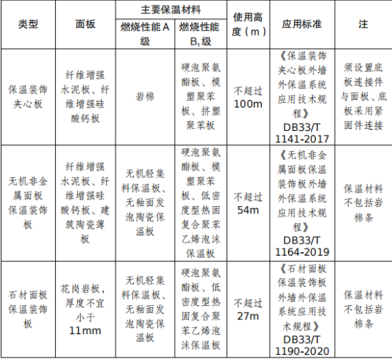 浙江省下發公文將保溫裝飾一體板歸類劃分制定標準,將保溫裝飾一體板劃分為五個大類,保溫裝飾夾芯板(巖棉類需要用到背板的材料)、無機非金屬保溫裝飾板、金屬飾面保溫裝飾板、石材飾面保溫裝飾板、有釉面發泡陶瓷保溫裝飾板。