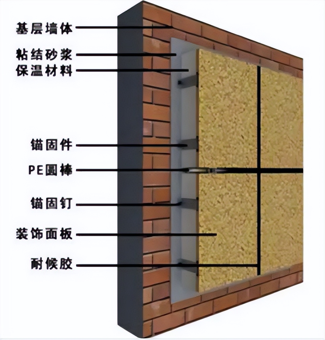 2.抗壓措施未處理好。保溫裝飾一體板表面抗壓能力負載過大,或者是對風力抗壓措施處理不當,使保溫裝飾因風力破壞而脫落。