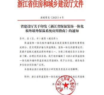 浙江省省住房和城鄉建設廳下發文件,明確推廣應用保溫一體板