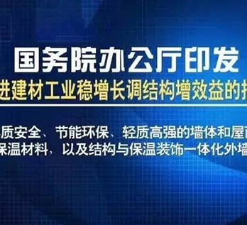國務院辦公廳印發《關于促進建材工業穩增長調結構增效益的指導意見》中,明確指出“發展本質安全、節能環保、輕質高強的墻體和屋面材料、 外墻保溫材料,以及結構與保溫裝飾一體化外墻板”。