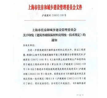 上海市住房城鄉建設管理發布文件,對外墻保溫材料做出系統新規定
